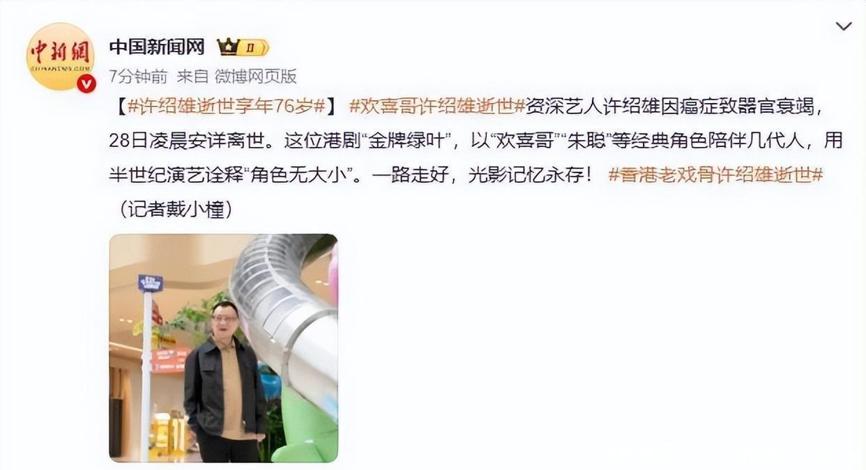 有些人十几天前看起来还生龙活虎,很有精神,不料突然就去世。演员许绍雄就是如此。